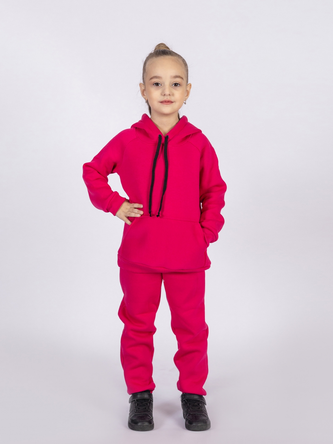296-Ф. Свитшот с капюшоном + Штаны, хлопок 65%, 35% ПЭ, 3-х нитка (начес) фуксия 80,86,92