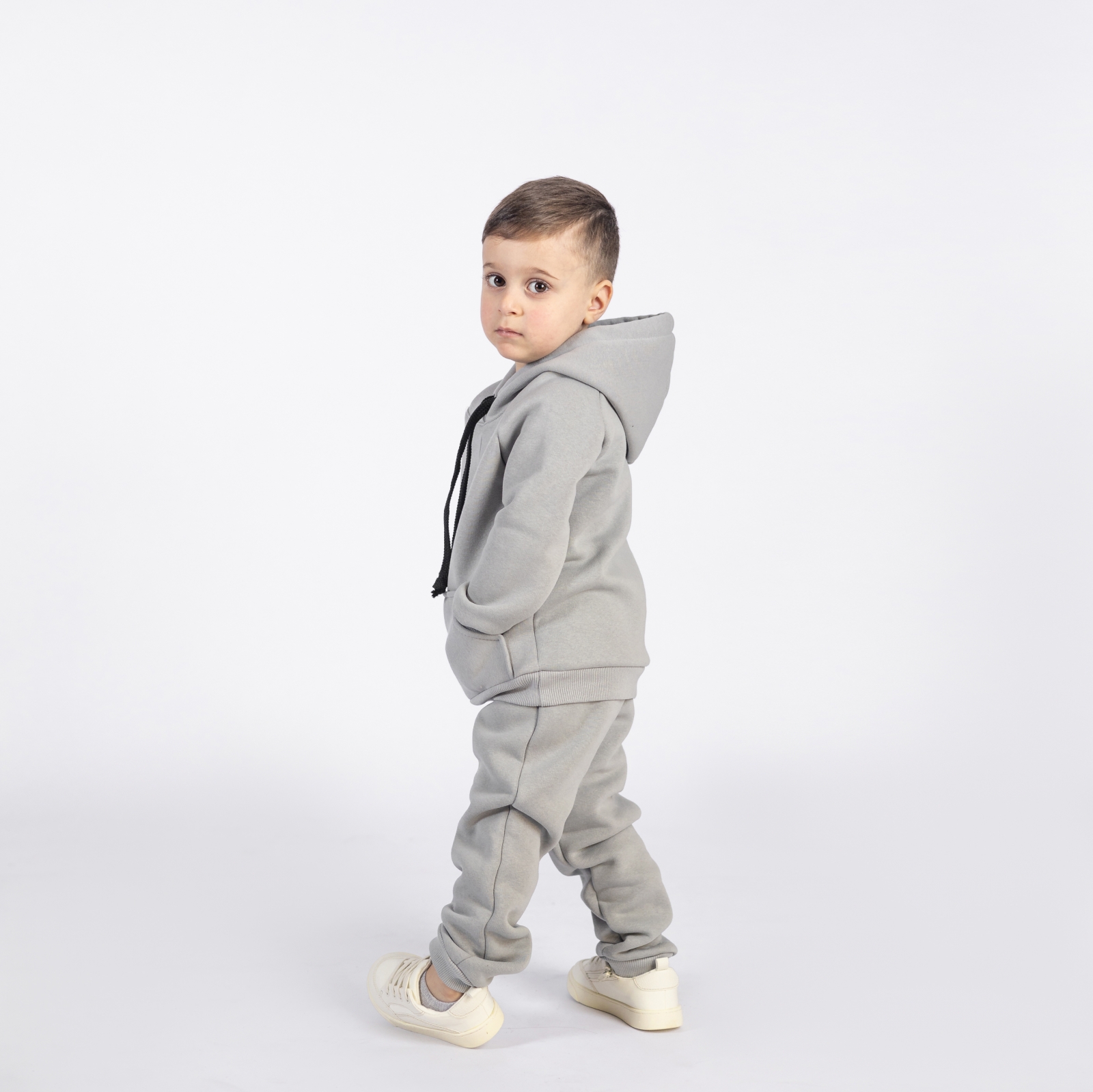 Купить оптом 296-С. Свитшот с капюшоном + Штаны, хлопок 65%, 35% ПЭ, 3-х нитка (начес) серый 80,86,92 в Краснодаре