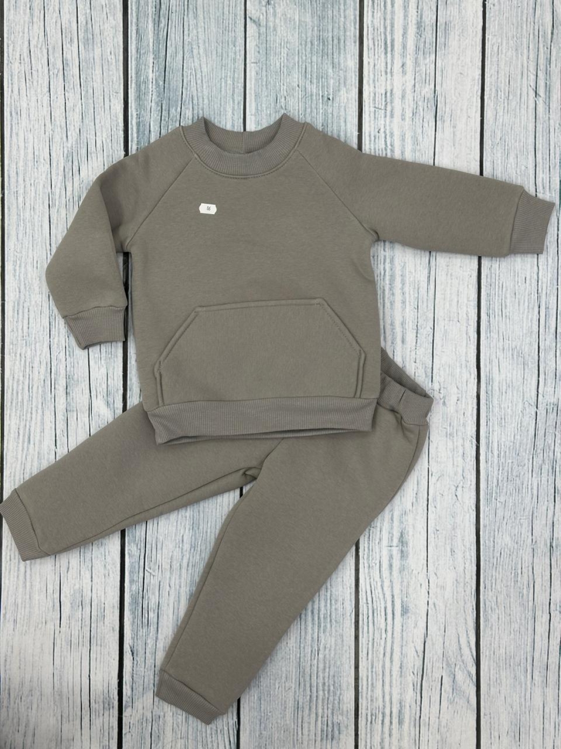 Купить оптом 297-СЕР. Свитшот + Штаны, хлопок 65%, 35% ПЭ, 3-х нитка (начес) серый ,80,86,92,98,104 в Краснодаре